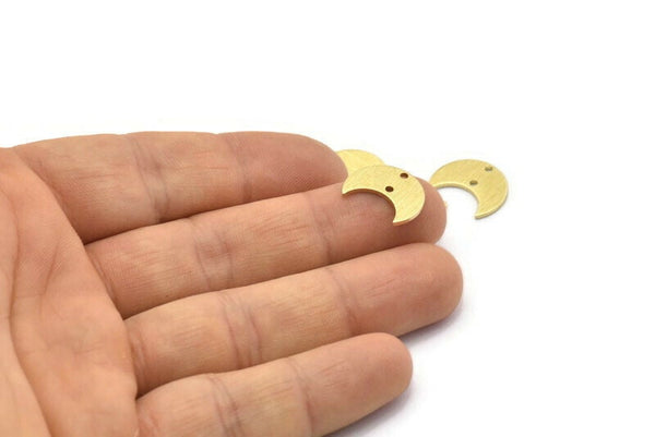 Textured Raw Brass Crescent Moon Charms With 2 Holes