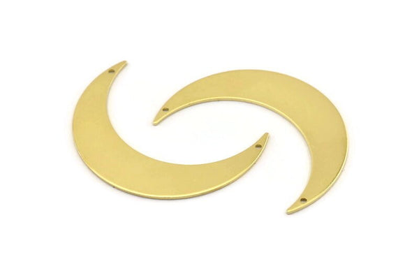 Brass Moon Charm, 6 Raw Brass Crescent Moon Charms With 2 Holes (46x11x0.90mm) M831