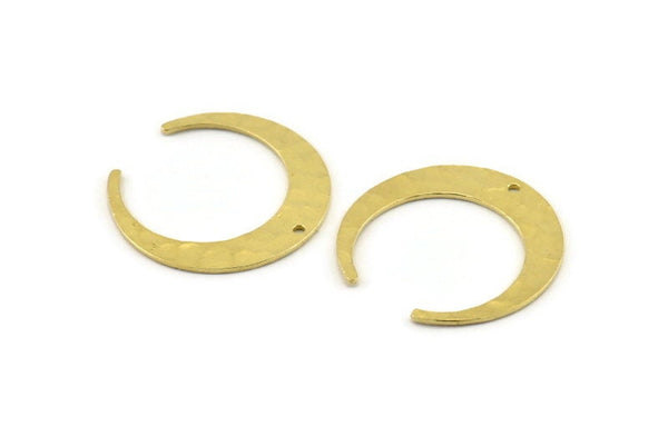 Hammered Raw Brass Crescent Moon Charms With 1 Hole