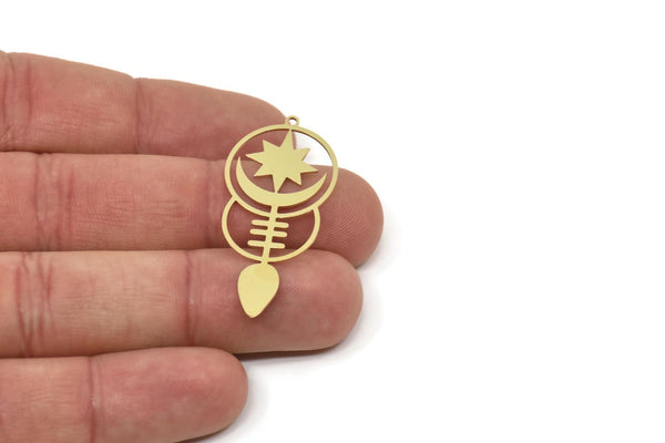 Raw Brass Crescent Moon And Star Shaped Charms