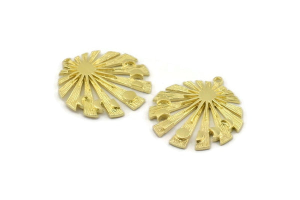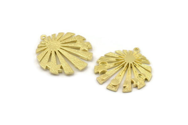 Raw Brass Rising Sun Flag Charms With 1 Loop