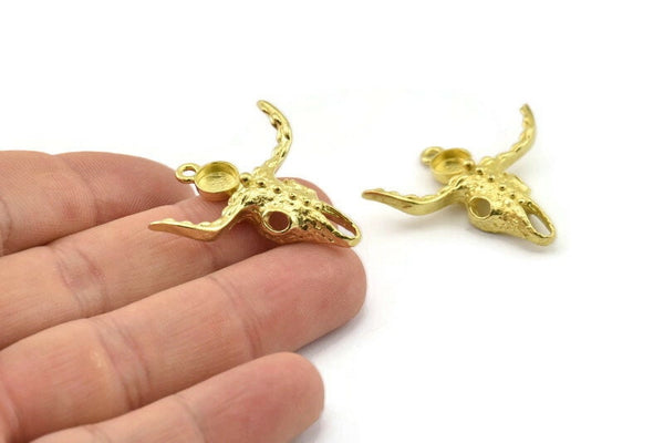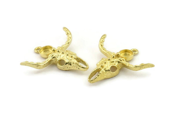 Brass Ox Skull, Raw Brass Ox Head Skull Charms With 1 Loop, Skull Pendants - Pad Size : 6mm (34x32x7mm) N2594