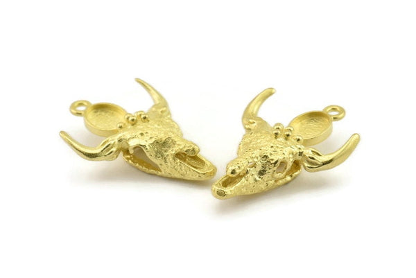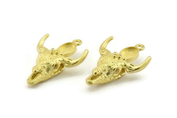 Raw Brass Ox Head Skull Charms With 1 Loop - Pad Size : 6x8mm