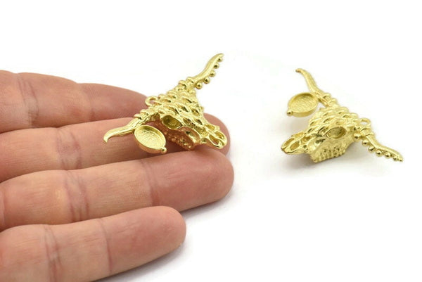 Raw Brass Ox Head Skull Charms With 1 Loop - Pad Size : 6x8mm