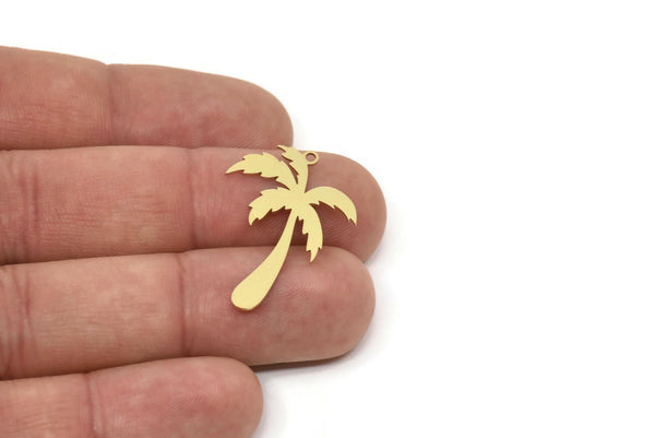 Raw Brass Palm Tree Charms With 1 Loop