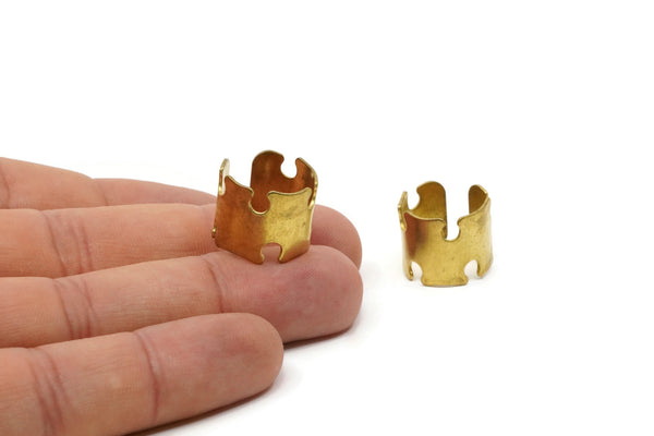 Brass Puzzle Ring - 5 Raw Brass Adjustable Puzzle Ring Settings - 16-17mm / 23 Gauge Mn36