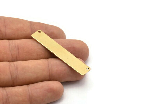 Brass Rectangle Bar, 10 Raw Brass Rectangle Stamping Blanks With 2 Holes , Necklace Pendants (50x10x0.80mm) D0294
