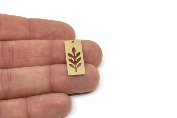 Raw Brass Branch Patterned Rectangle Shaped Charms With 1 Hole