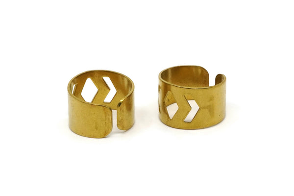 Brass Ring, 4 Raw Brass Adjustable Chevron Rings A0883