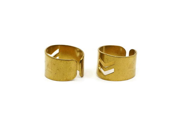 Brass Ring, 4 Raw Brass Adjustable Chevron Rings A0885