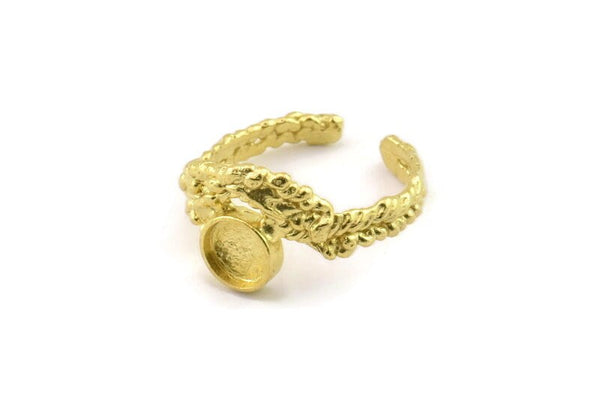 Raw Brass Adjustable Rings With 1 Stone Settings