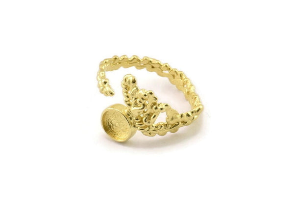 Brass Ring Setting, Raw Brass Adjustable Rings With 1 Stone Settings - Pad Size 6mm N2547