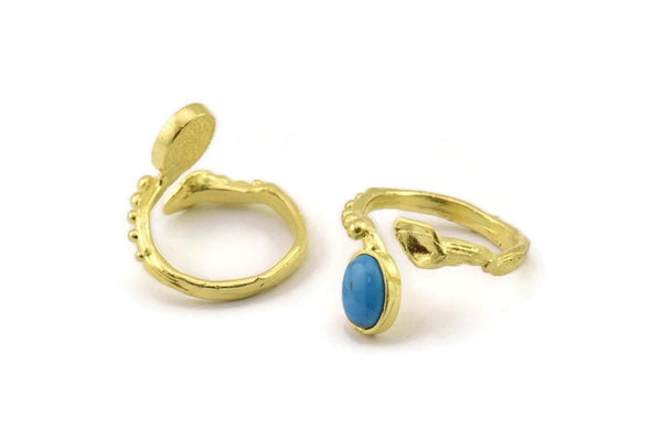Raw Brass Adjustable Rings With 1 Stone Settings