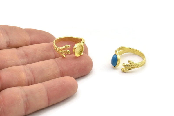 Raw Brass Adjustable Rings With 1 Stone Settings