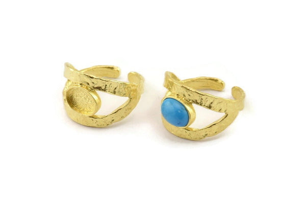 Brass Ring Setting, Raw Brass Adjustable Rings With 1 Stone Settings - Pad Size 6x8mm N2556