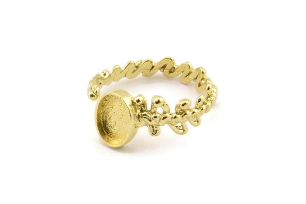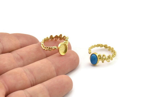 Raw Brass Adjustable Rings With 1 Stone Settings