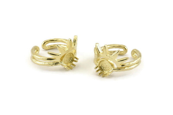 Raw Brass Adjustable Rings With 1 Stone Settings