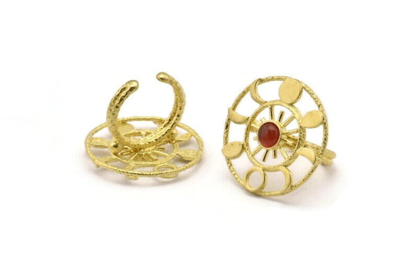 Raw Brass Moon Phases Ring With 1 Stone Setting - Pad Size 6mm