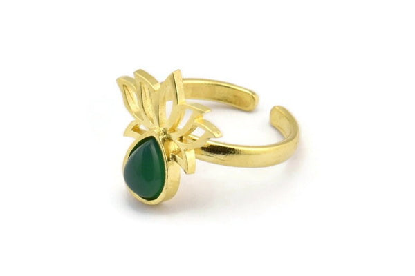 Raw Brass Lotus Flower Rings With 1 Drop Shaped Stone Setting - Pad Size 8x6mm
