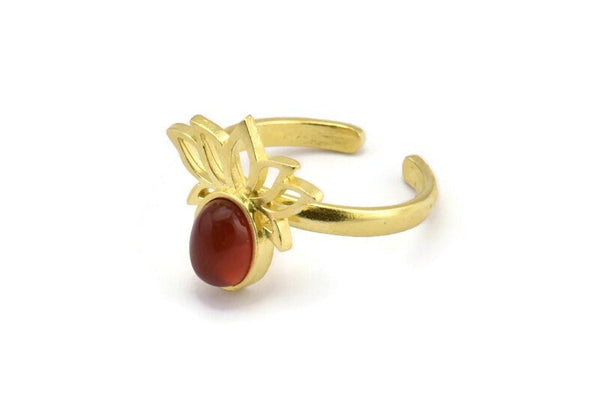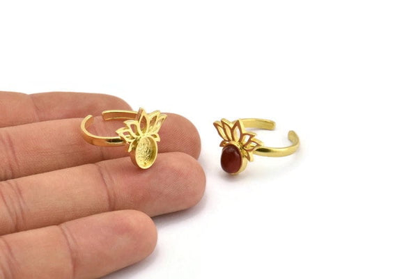 Raw Brass Lotus Flower Rings With 1 Oval Shaped Stone Setting - Pad Size 8x6mm