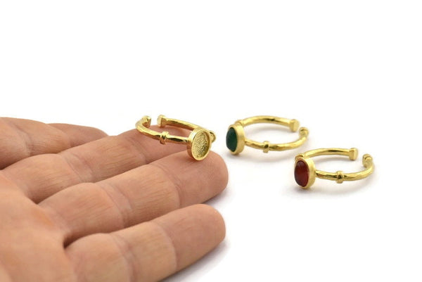 Raw Brass Oval Ring With 1 Stone Setting - Pad Size 5x7mm