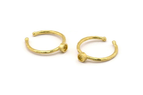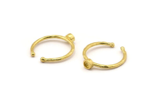 Brass Ring Settings, 6 Raw Brass Round Ring With 1 Stone Setting - Pad Size 3mm N1760