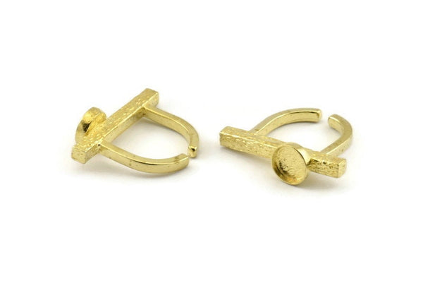 Brass Ring Settings, Raw Brass Adjustable D Shape Rings - Pad Size 8mm N1060