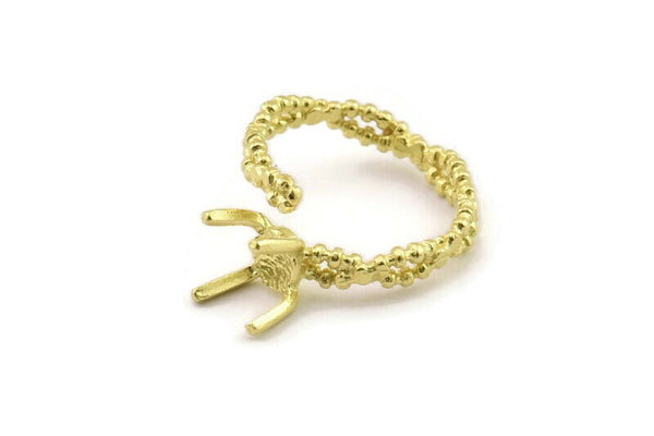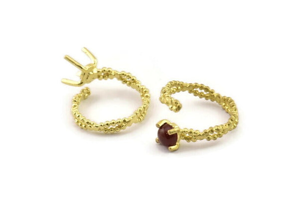 Brass Ring Settings, Raw Brass Claw Rings, Adjustable Rings - Pad Size 6mm N2550