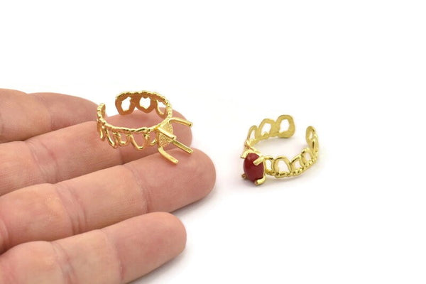 Raw Brass Claw Rings, Adjustable Rings - Pad Size 6x8mm