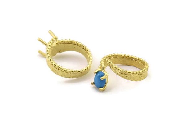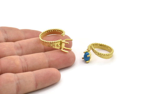 Brass Ring Settings, Raw Brass Claw Rings, Adjustable Rings - Pad Size 6x8mm N2577