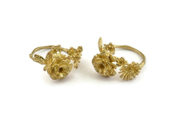 Raw Brass Flower Ring With 1 Stone Setting - Pad Size 4mm
