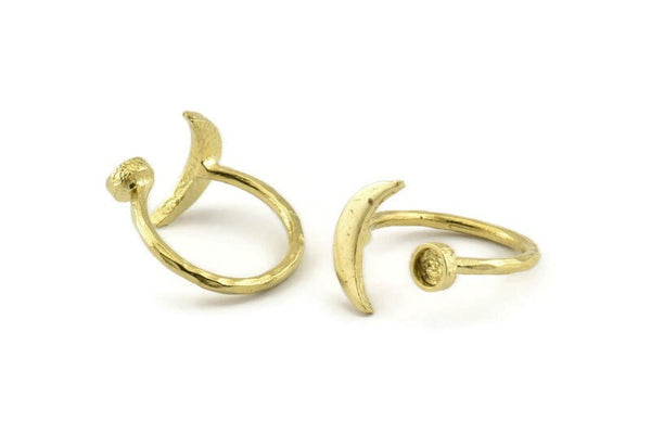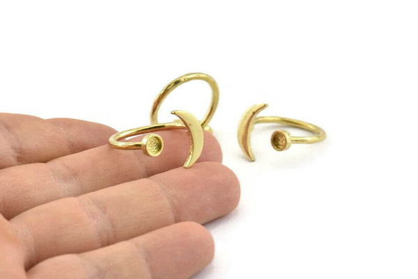 Raw Brass Moon And Planet Ring With 1 Stone Setting - Pad Size 4mm
