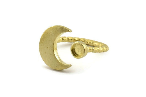 Raw Brass Moon And Planet Ring With 1 Stone Setting - Pad Size 4mm