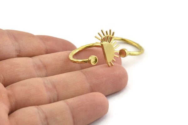 Raw Brass Moon And Sun Ring With 1 Stone Setting - Pad Size 3mm