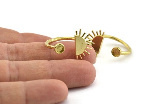 Raw Brass Moon And Sun Ring With 1 Stone Setting - Pad Size 4mm