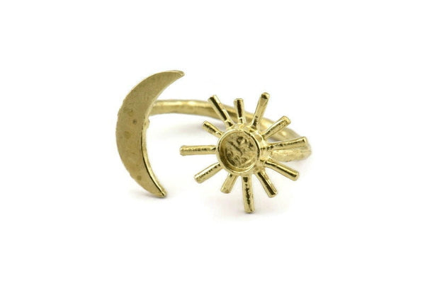 Raw Brass Moon And Sun Ring With 1 Stone Setting - Pad Size 4mm