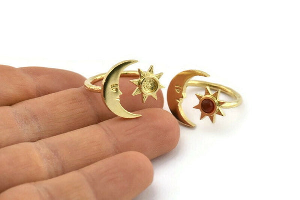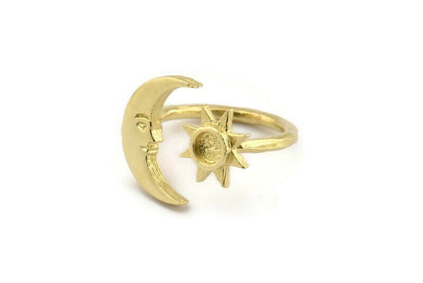 Raw Brass Moon And Sun Ring With 1 Stone Setting - Pad Size 4mm