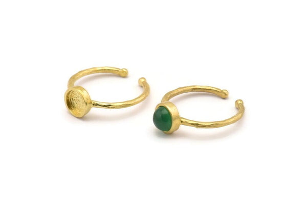 Raw Brass Round Ring With 1 Stone Setting - Pad Size 6mm