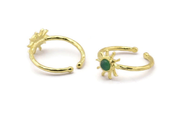 Raw Brass Sun Ring With 1 Stone Setting - Pad Size 4mm
