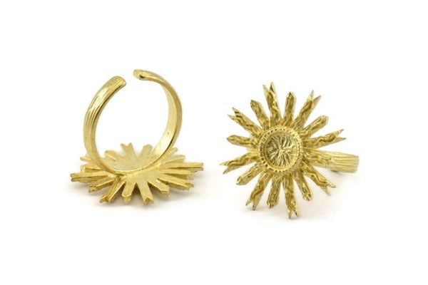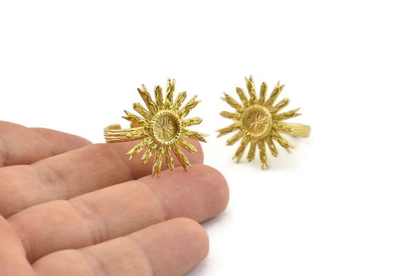 Raw Brass Sun Ring With 1 Stone Setting - Pad Size 6mm