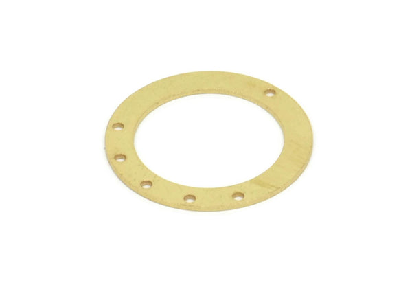 Brass Round Charm, 4 Raw Brass Round Shaped Charms With 1 Hole, 2 Holes And 6 Holes, Findings (28x0.80mm) SMP1933