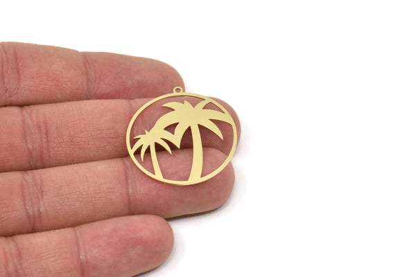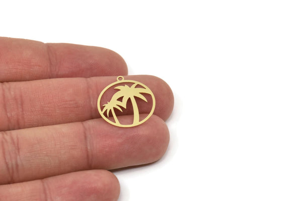 Brass Round Charm, Raw Brass Palm Tree Charms With 1 Loop, Palm Charms, Pendants, Findings (22/27/32x0.60mm) SMP2448