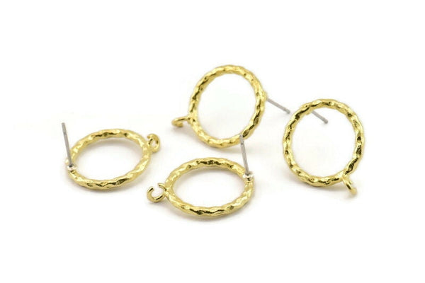 Brass Round Earring, 4 Raw Brass Circle Stud Earrings (18x2mm) N2433