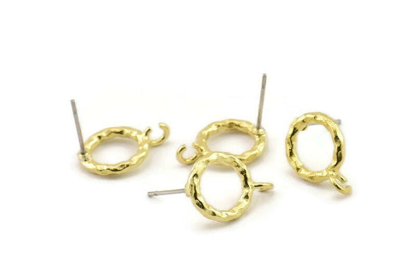 Brass Round Earring, 6 Raw Brass Circle Stud Earrings (12x2mm) N2432