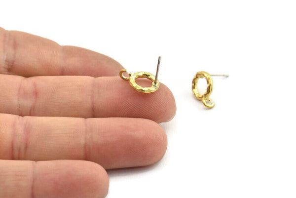 Brass Round Earring, 8 Raw Brass Circle Stud Earrings (10x2mm) N2428