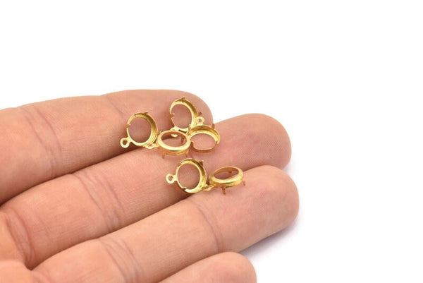 Brass Round Setting, 100 Raw Brass Round Settings With 1 Loop and 1 Pad Setting (11.5x9x3.5mm) E114