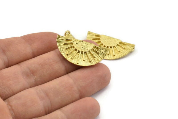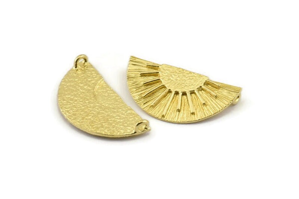 Brass Semi Circle, Raw Brass Sunshine Pendant With 2 Loops, Findings, Charms (30x15mm) N0994