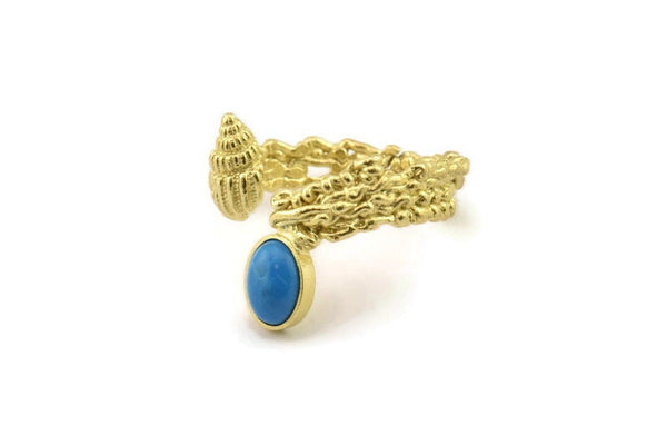 Brass Shell Ring, Raw Brass Adjustable Rings With 1 Stone Settings - Pad Size 6x8mm N2566