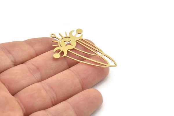 Raw Brass Sun And Crescent Moon Charms With 1 Loop