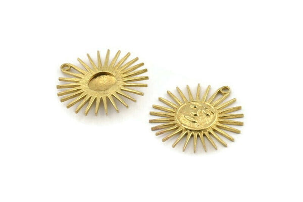 Brass Sun Charm, Raw Brass Sun Charms With 1 Loop, Findings (30x28mm) N1480